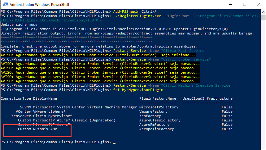 Verify that the Nutanix Acropolis plugin has been registered: