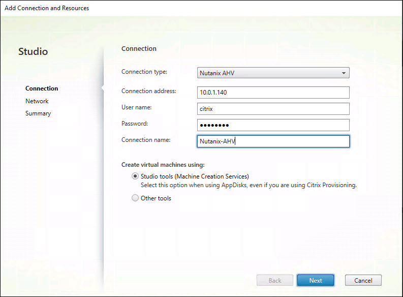 Step 10 – Select the Nutanix connection type on the Connection page.
