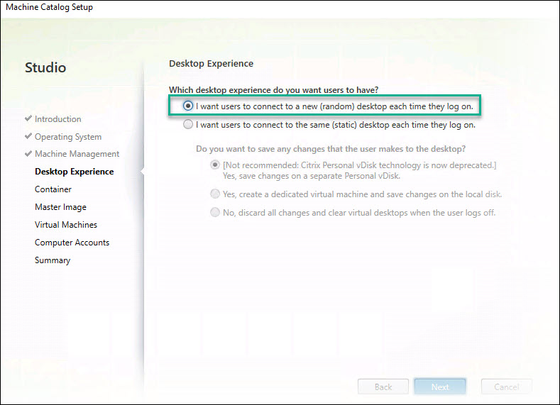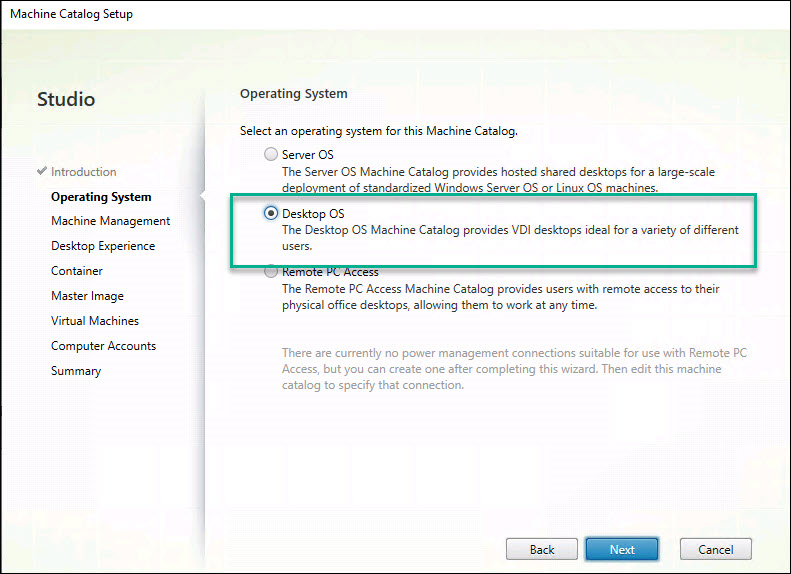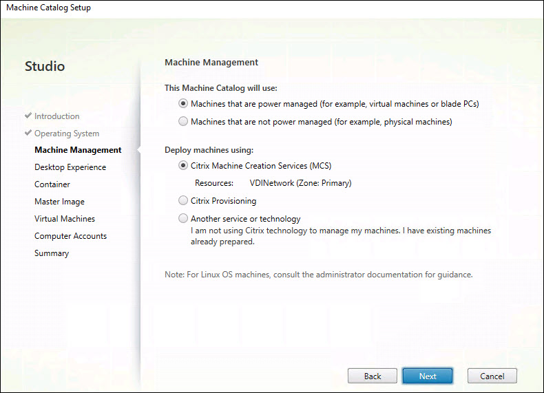 Step 17: Select “Machine that are power managed” and “Citrix Machine Creation MCS”. Click Next