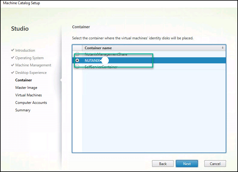 Create a Machine Catalog that uses a snapshot of a master image you created on the Nutanix hypervisor.