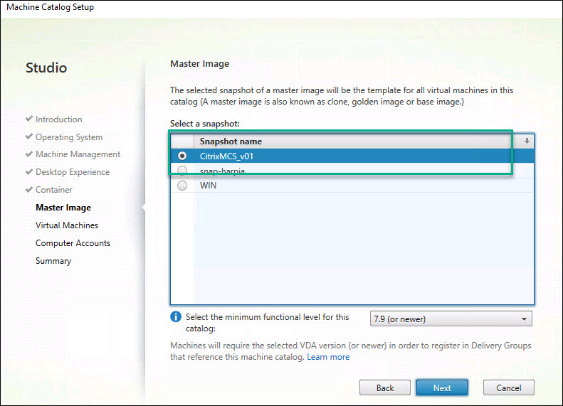 Step 20: Select the snapshot of the master image.