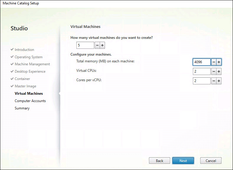 Step 21: Select the number of the VMs, Memory and CPU.