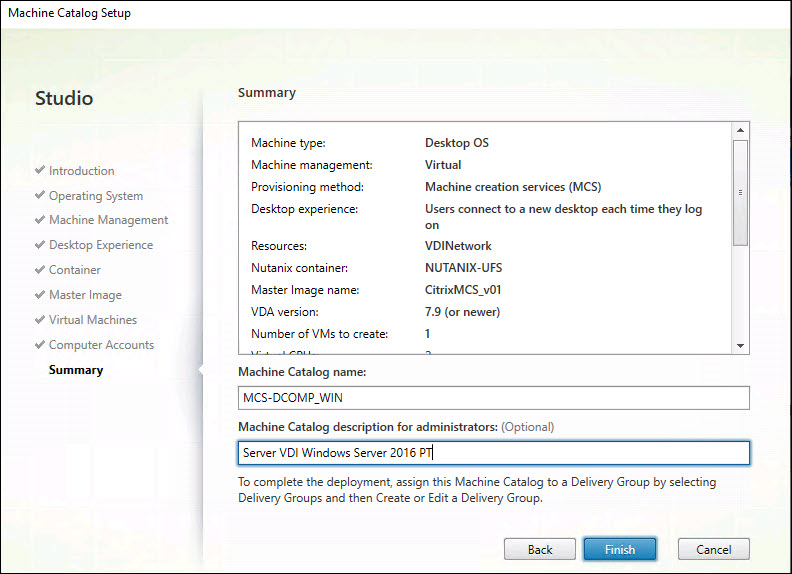 Step 23: Enter the name for the Machine Catalog and then click Finish.