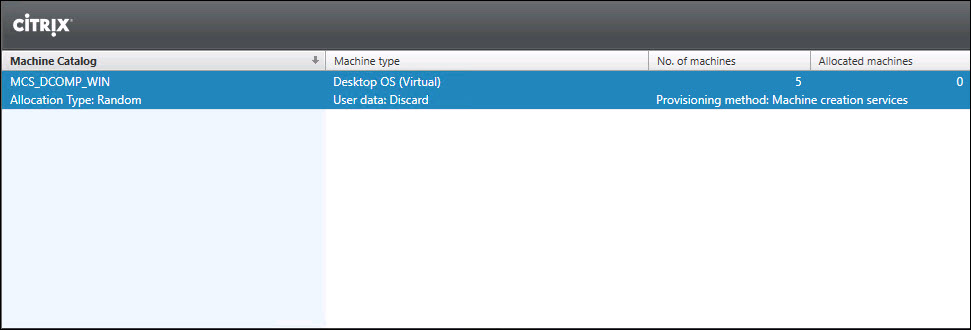Review the machine catalog in Citrix Studio.