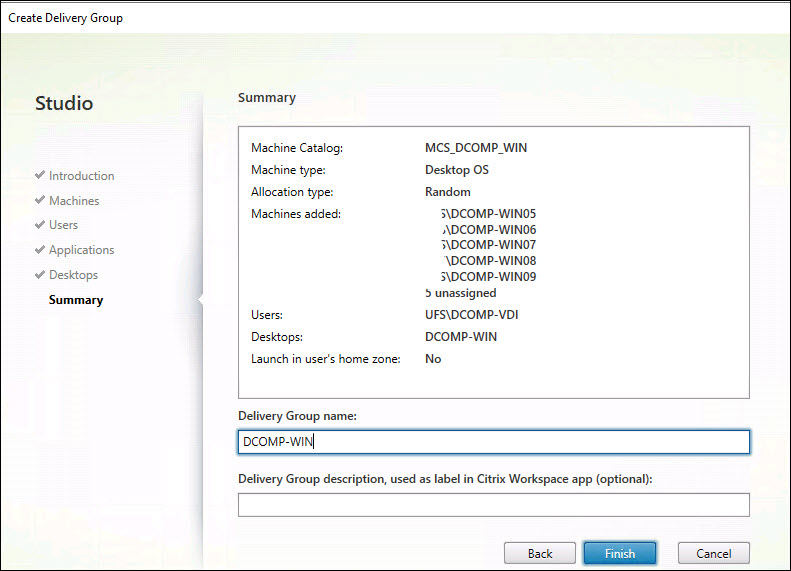 Step 29: Add a name for the delivery group and then click Finish.