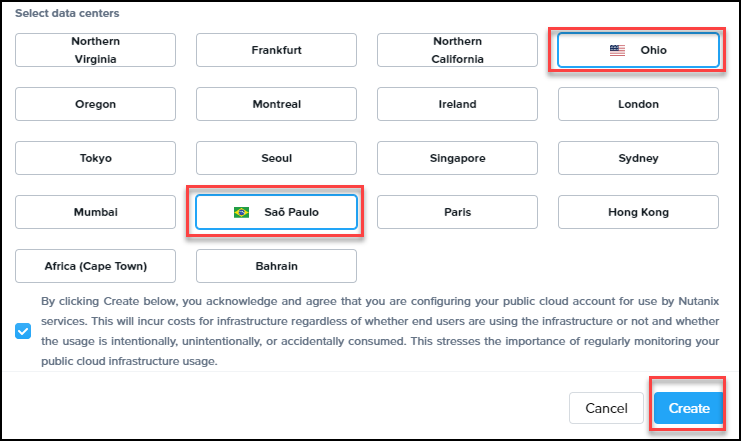 Step 6: After you have completed the Stack creation step, go back to the Cluster Portal and click Verify to validate that step. Select the region of the datacenters and click Create.