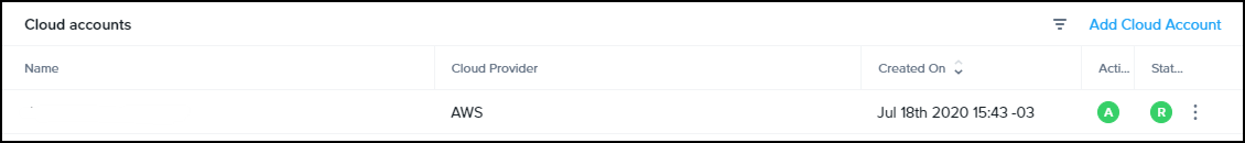 Step 7: The status of adding the account in the cloud can be checked on the Clusters portal. “R” status means that the cloud stack is “ready”.